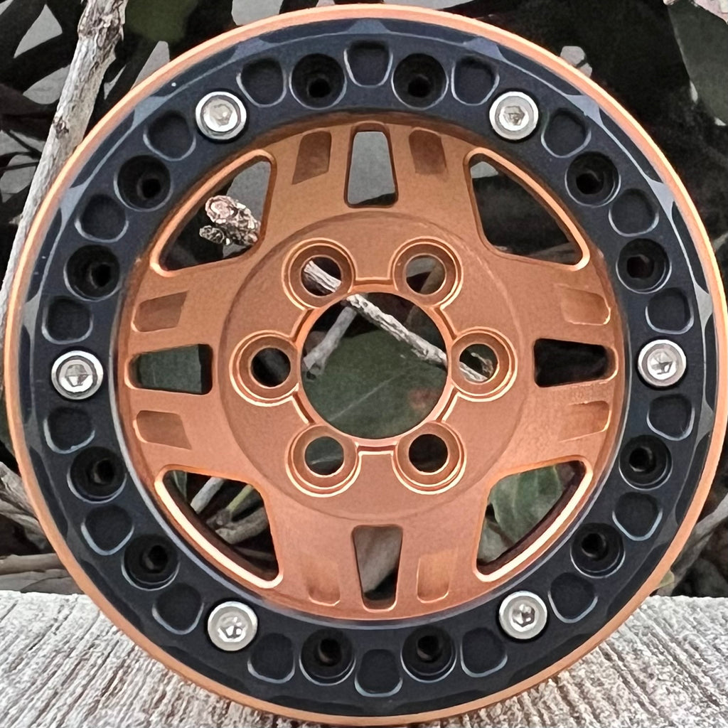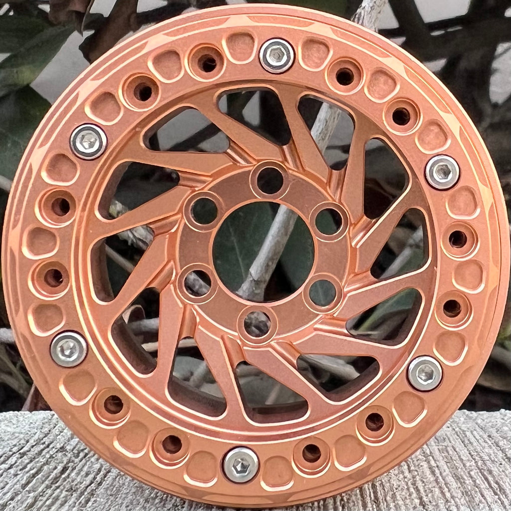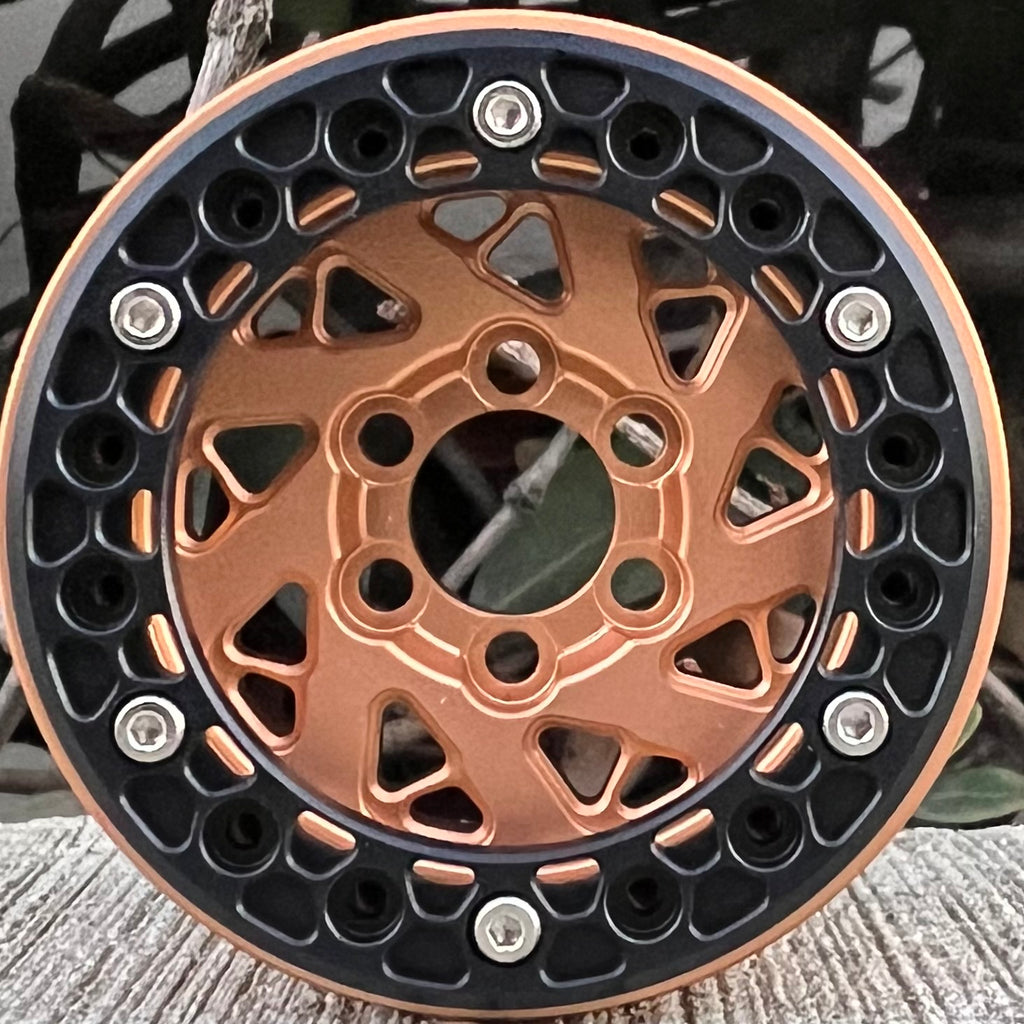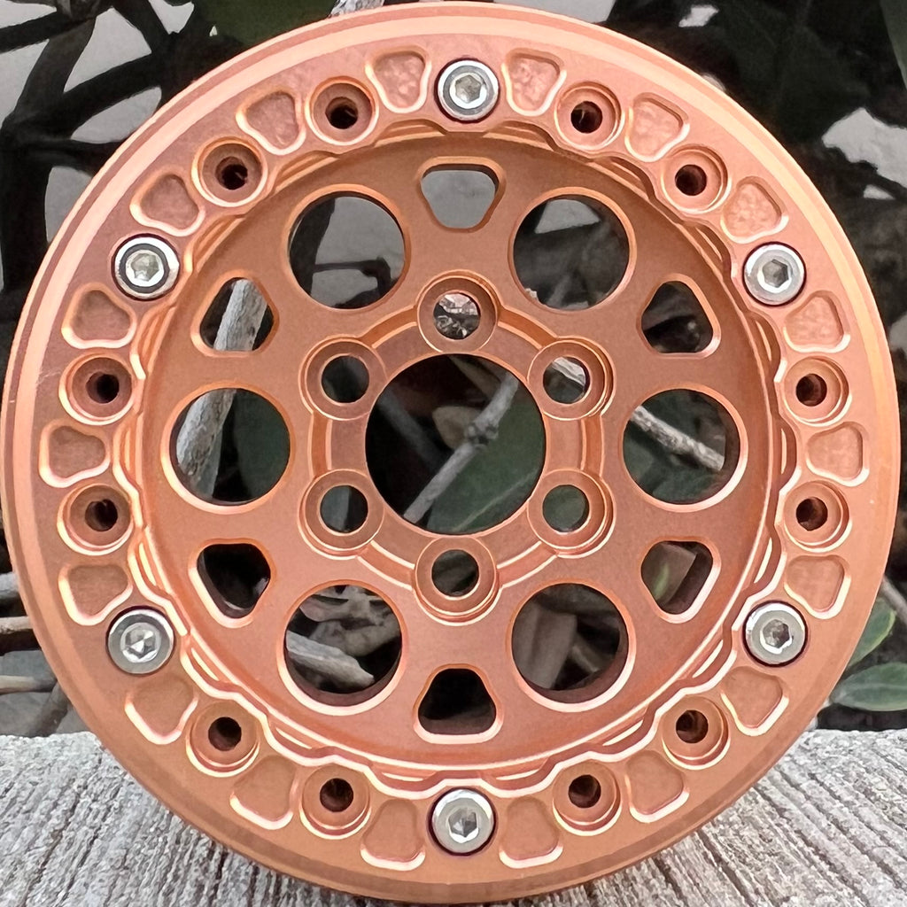 (Disclaimer: Anodized wheels may have racking marks and slight discoloration around threaded holes and bead groove. None of these are visible once the tire is mounted and beadlock rings are installed. Anodize is sent out to outside vendors and the actual process is out of our control. Please be aware of this prior to purchasing as all sales are final. ***Picture shown is 1.9 variant and is for REFERENCE ONLY***)