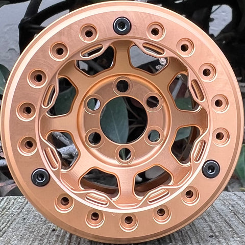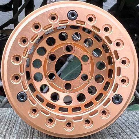 (Disclaimer: Anodized wheels may have racking marks and slight discoloration around threaded holes and bead groove. None of these are visible once the tire is mounted and beadlock rings are installed. Anodize is sent out to outside vendors and the actual process is out of our control.  Please be aware of this prior to purchasing as all sales are final)